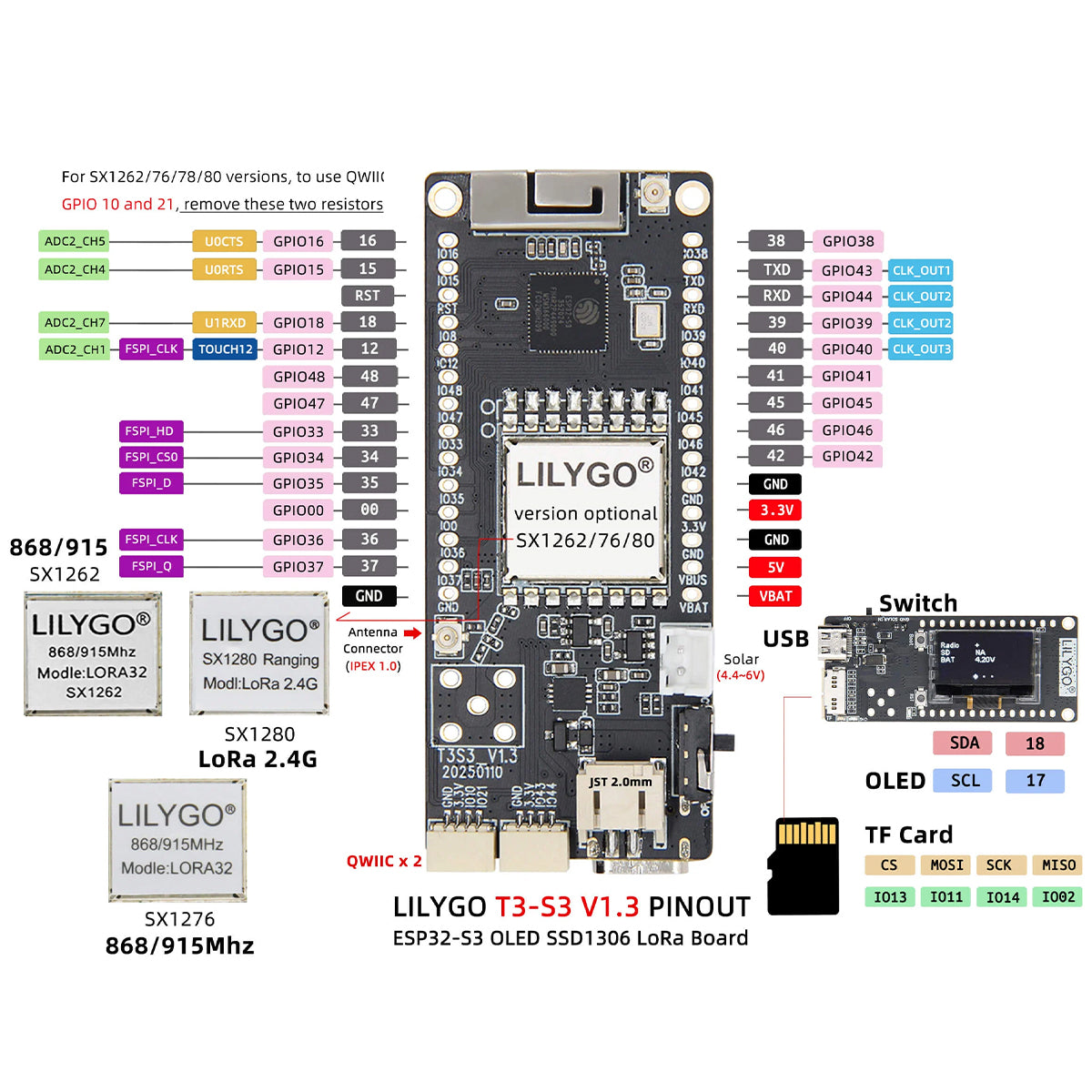 LILYGO T3S3 V1.3 is a compact and high-performance development board combine with ESP32 S3 MCU and SX1262 LoRa Chip, support flash meshtastic&meshcore radio,easy to DIY for mesh series product,for example Mesh Radio,Mesh Node,Mesh Solar Repeater.
