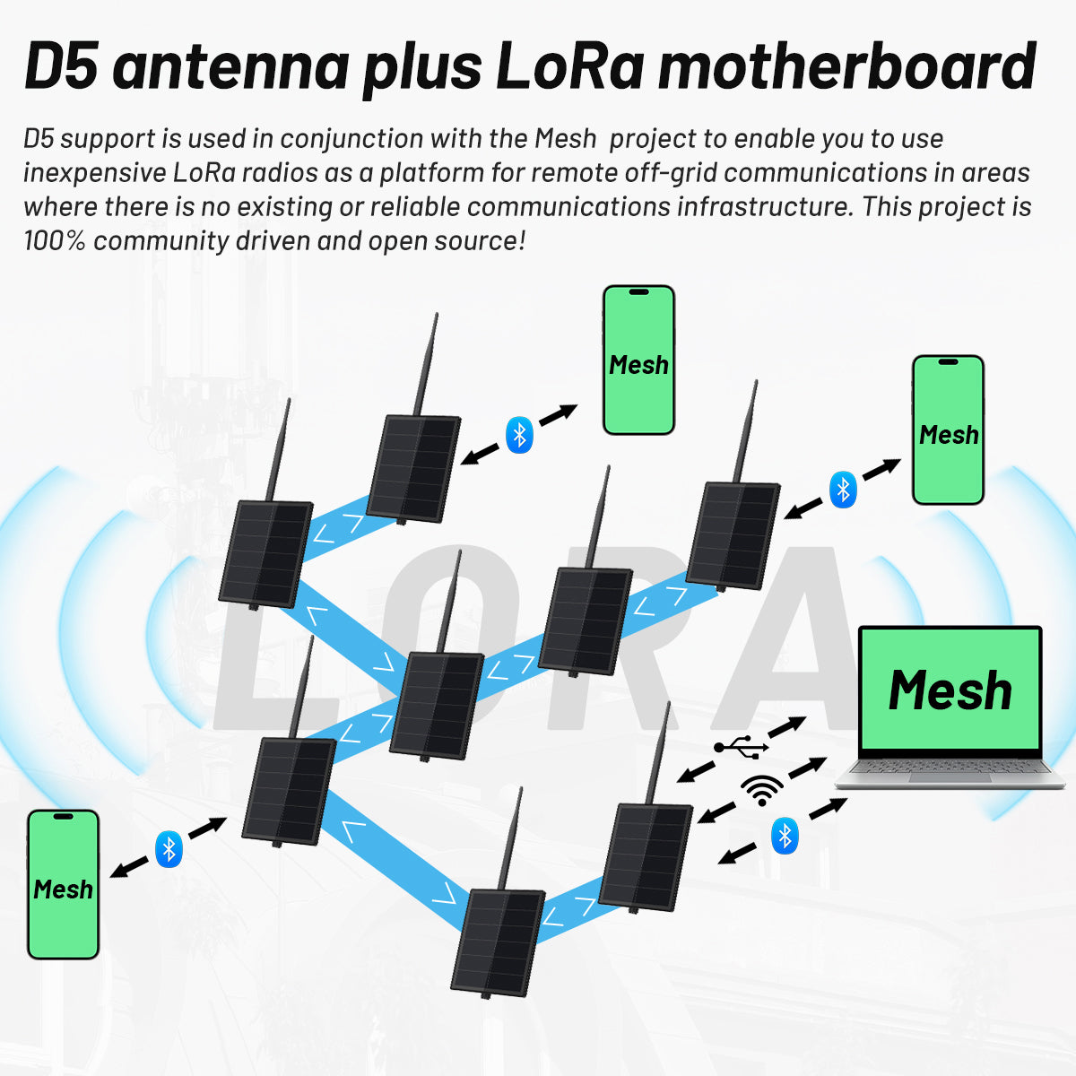 D5L-H1 is combine D5 Solar Panel and Heltec ESP32 V3 Development Boards.V3 is a classic Lora module from Heltec Automation, equipped with ESP32 WiFi Bluetooth Processor and LoRa SX1262 Chip.it's almost the best-selling lora modules in the world,since the Lowest price and easy to using.very kindly for the meshtastic or meshcore starter.But please note that the power consumption of V3 is a bit high, as the standby power consumption of the ESP32 chip is relatively high. Not suitable for long-term use, especially in winter in Nordic countries.and the improve version D5L-H2(built in Heltec V4 dev boards) will be a better choice for winter.